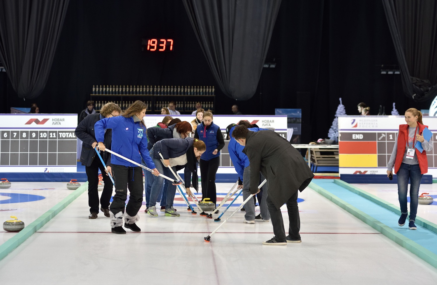 В игре в керлинг может принять участие группа до 10 человек.