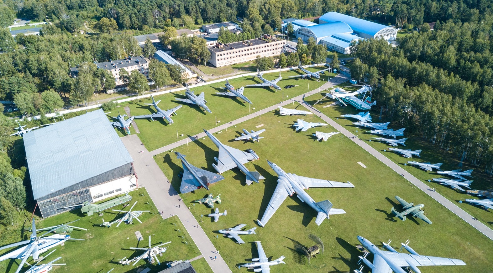 В настоящее время в выставочных павильонах все туристы смогут увидеть такие образцы авиационной техники как: По-2, разведчик Р-5, дальний бомбардировщик ДБ-3, транспортно-пассажирский самолет Ли-2, истребитель Як-9У, бронированный штурмовик Ил-10М, фронтовой бомбардировщик Ту-2, стратегический бомбардировщик Ту-4, истребитель МиГ-9, штурмовик Су-25, истребитель Як-17, истребитель Як-23, всепогодный барражирующий перехватчик Як-25, разведчик Як-25 РВ, экспериментальный самолет вертикального взлета и посадки Як-36, палубный штурмовик вертикального взлета и посадки Як-38, бомбардировщик Ту-16, стратегический бомбардировщик Ту-95, пассажирский самолет Ту-104, фронтовой бомбардировщик Ил-28, стратегический бомбардировщик 3М, патрульно-противолодочная амфибия Бе-12, военно-транспортный самолет Ан-8, десантно-транспортный самолет Ан-12, истребитель-бомбардировщик Су-7Б (Су-7Л, Су-7БКЛ), истребитель-перехватчик Су-9, многоцелевой фронтовой истребитель МиГ-23, многоцелевой истребитель МиГ-25, истребитель-перехватчик Су-11, истребитель-перехватчик Су-15, экспериментальный бомбардировщик Су-100, фронтовой бомбардировщик Су-24, истребитель-перехватчик Су-27, экспериментальный самолет-прототип "Бурана", истребитель-перехватчик Ла-250, разведчик Як-27Р, фронтовой бомбардировщик Як-28Л, бомбардировщик Ту-22, ракетоносец Ту-22М, сверхзвуковой пассажирский самолет Ту-144, перехватчик Ту-128, сверхзвуковой стратегический ракетоносец М-50, вертолет Ми-6, вертолет Ми-8, вертолет Ми-12, боевой вертолет Ми-24А, противолодочный вертолет Ка-25.